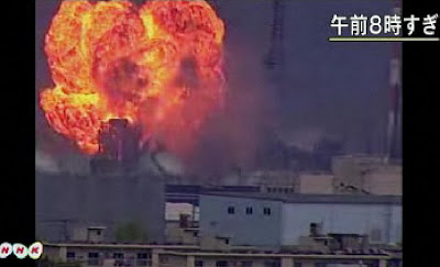 In the Mitsubishi plant in Iwakuni city in which the fire explosion accident occurred, about 3400 drums filled with depleted uranium are stored. Though the leakage of the depleted uranium has not been reported, it can not be determined because the safety has not been measured. In Iwakuni, it was raining all day whike the accident. Dense fog advisory is out now. Toxic gas has been released to the environment because of the large scale of the chemical factory fire. It shoud be wise for people living or sightseeng there to self-defense with mask and so on.